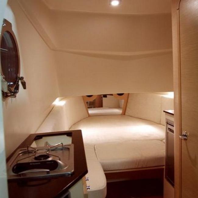 Equipements : Douche de pont, bain de soleil avant et arrière, carré arrière 6 personnes, plate forme, échelle de bain, taud de soleil,coffre de rangement, GPS, guideau électrique
