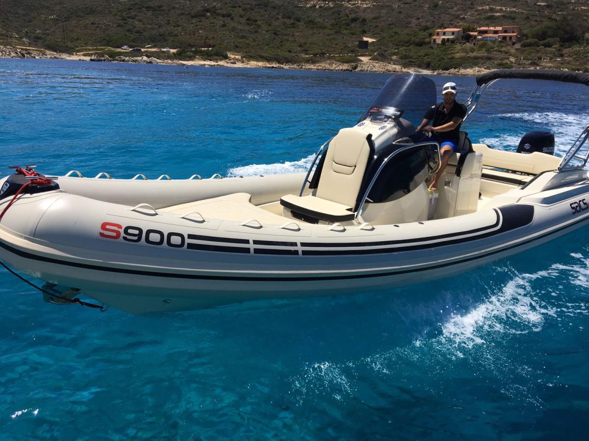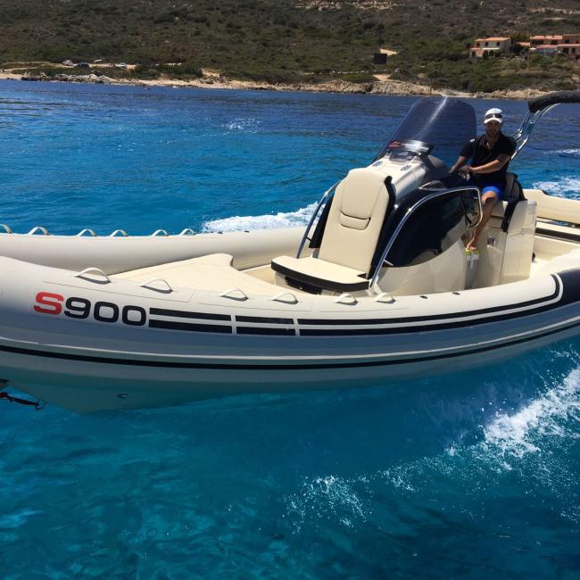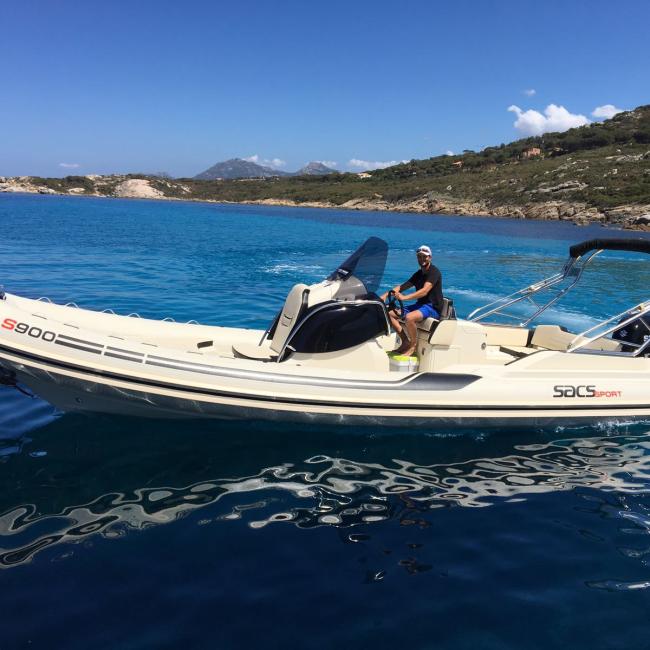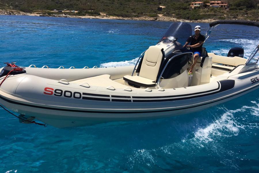 Ce bateau de 9 mètres, équipé d'un moteur de 300 CV et d'un guindeau électrique, allie confort et élégance avec un bain de soleil avant, un carré arrière pour 6 personnes et un taud de soleil couvrant la partie arrière. Sa motorisation à commandes électriques assure une conduite souple et agréable en mer.